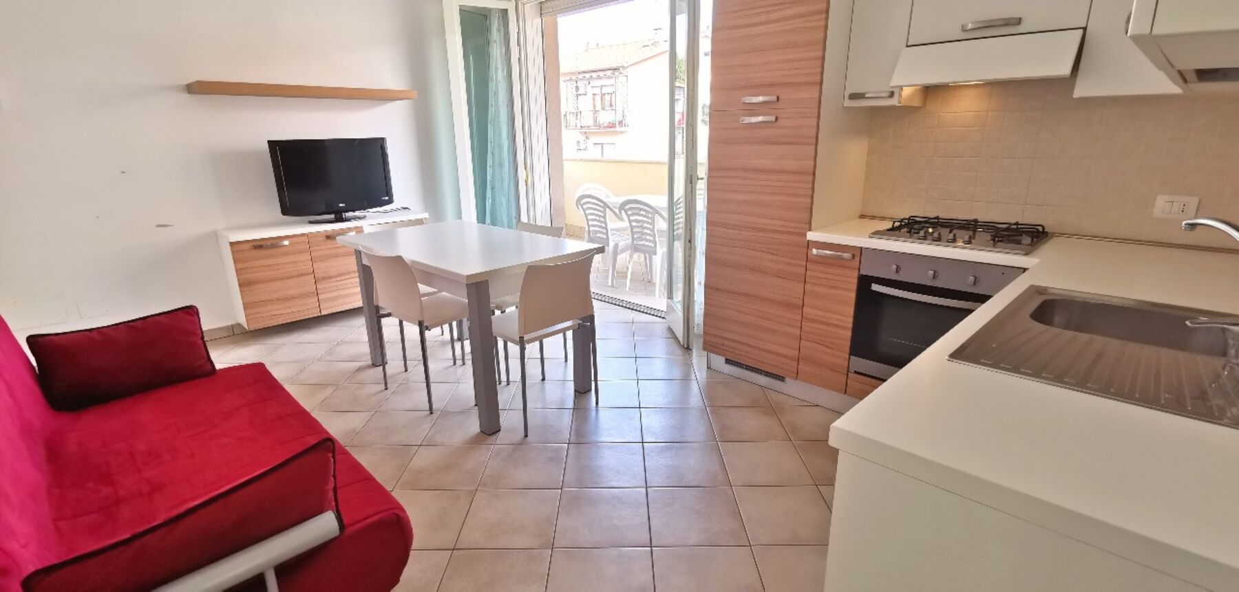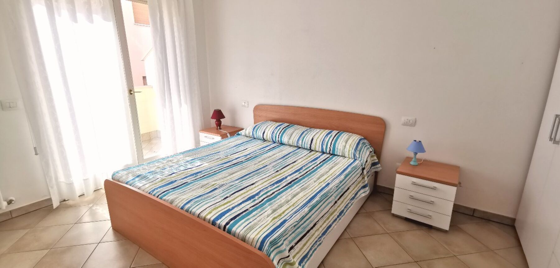 Appartamento in piccola palazzina ristrutturata, Via Lampara 22/a, 450 m dal mare, piano 1°, int. 2, posti letto 4/6, finemente arredato, composto da soggiorno con angolo cottura e divano letto, camera con letto matrimoniale, camera con letto singolo + letto estraibile, bagno con box doccia. Appartamento dotato di terrazzo abitabile con possibilità di mangiare all' aperto, aria condizionata (split nel disimpegno che porta alle camere letto), tv, lavatrice, lavastoviglie e posto auto.