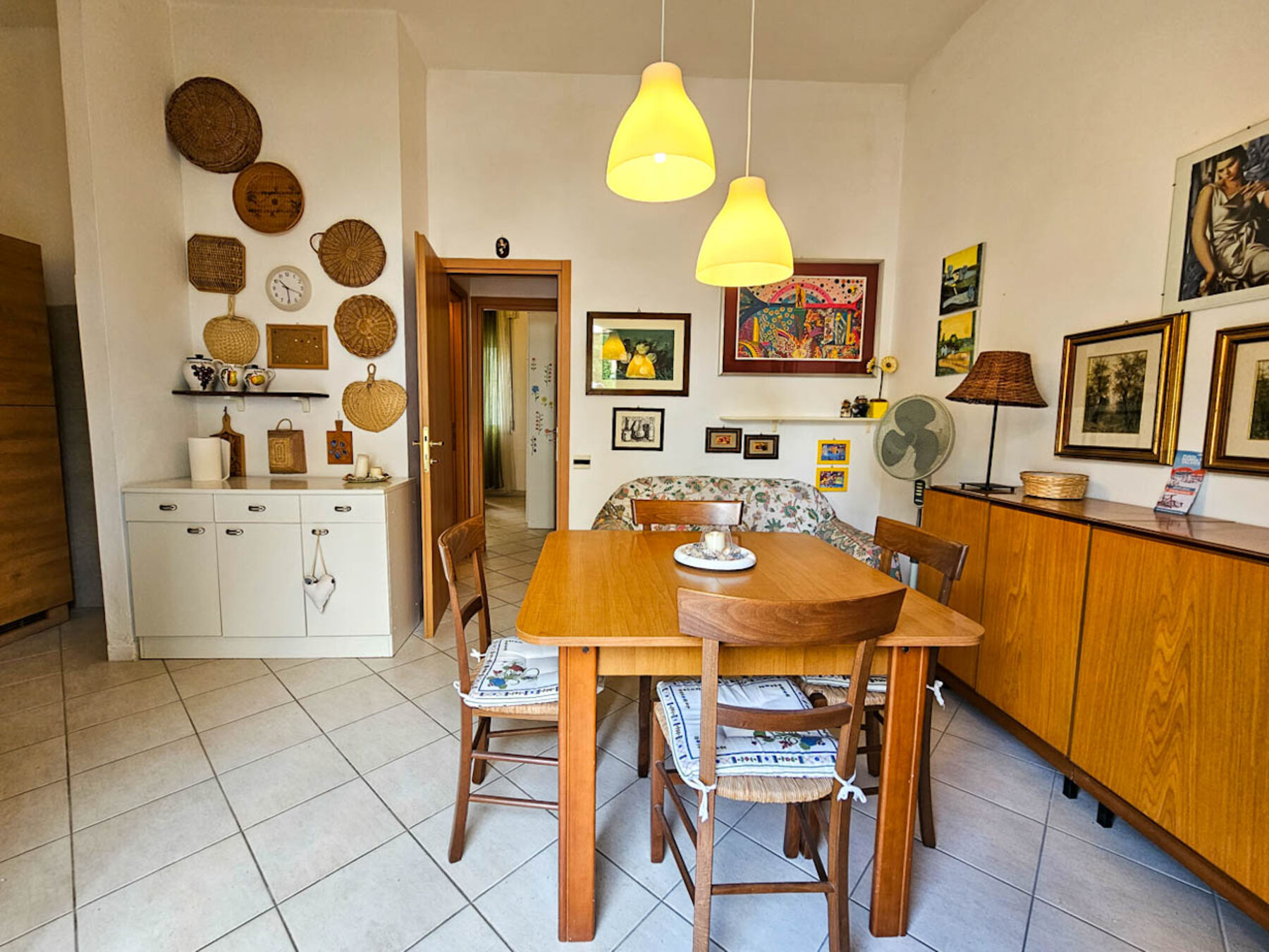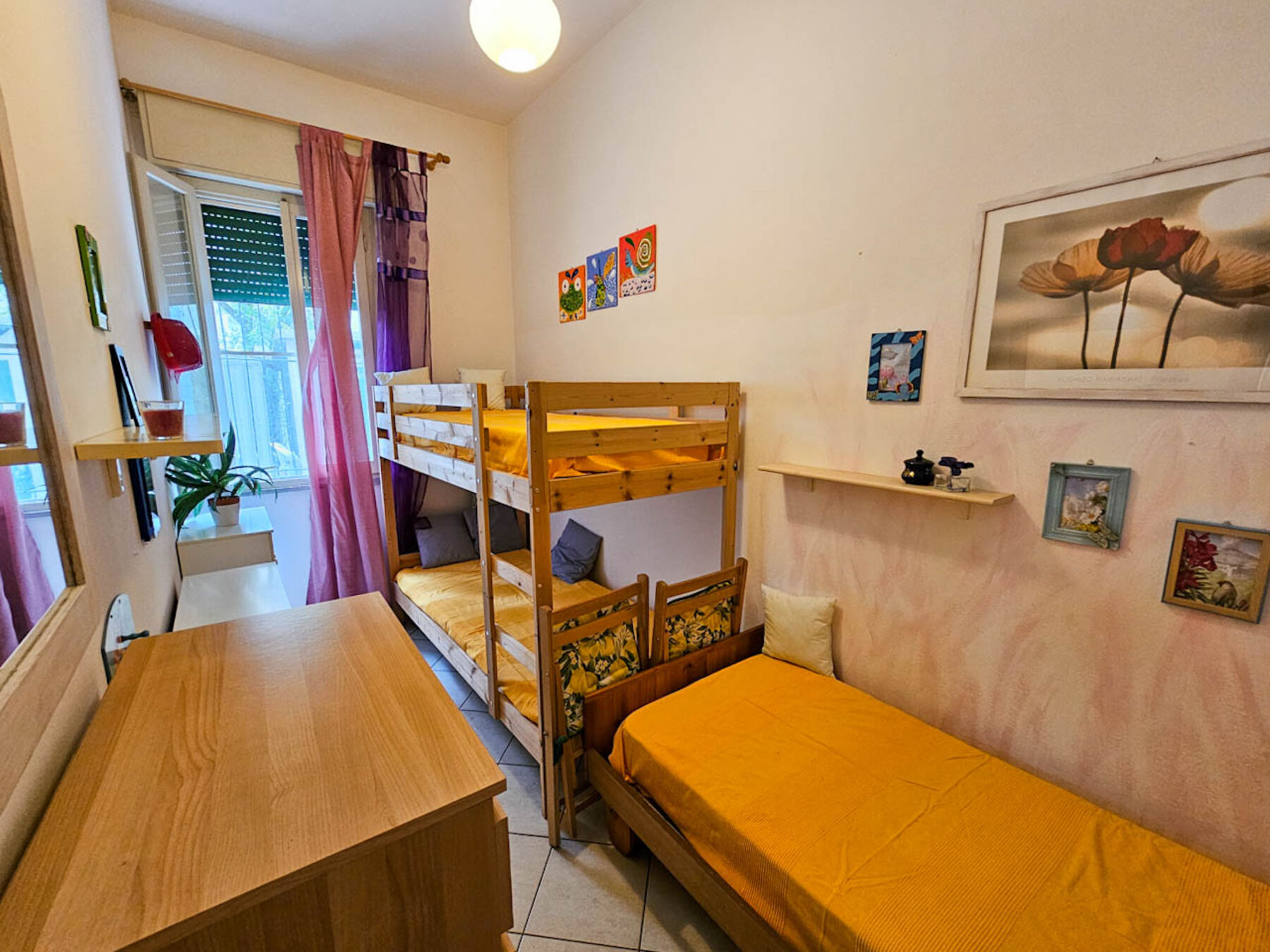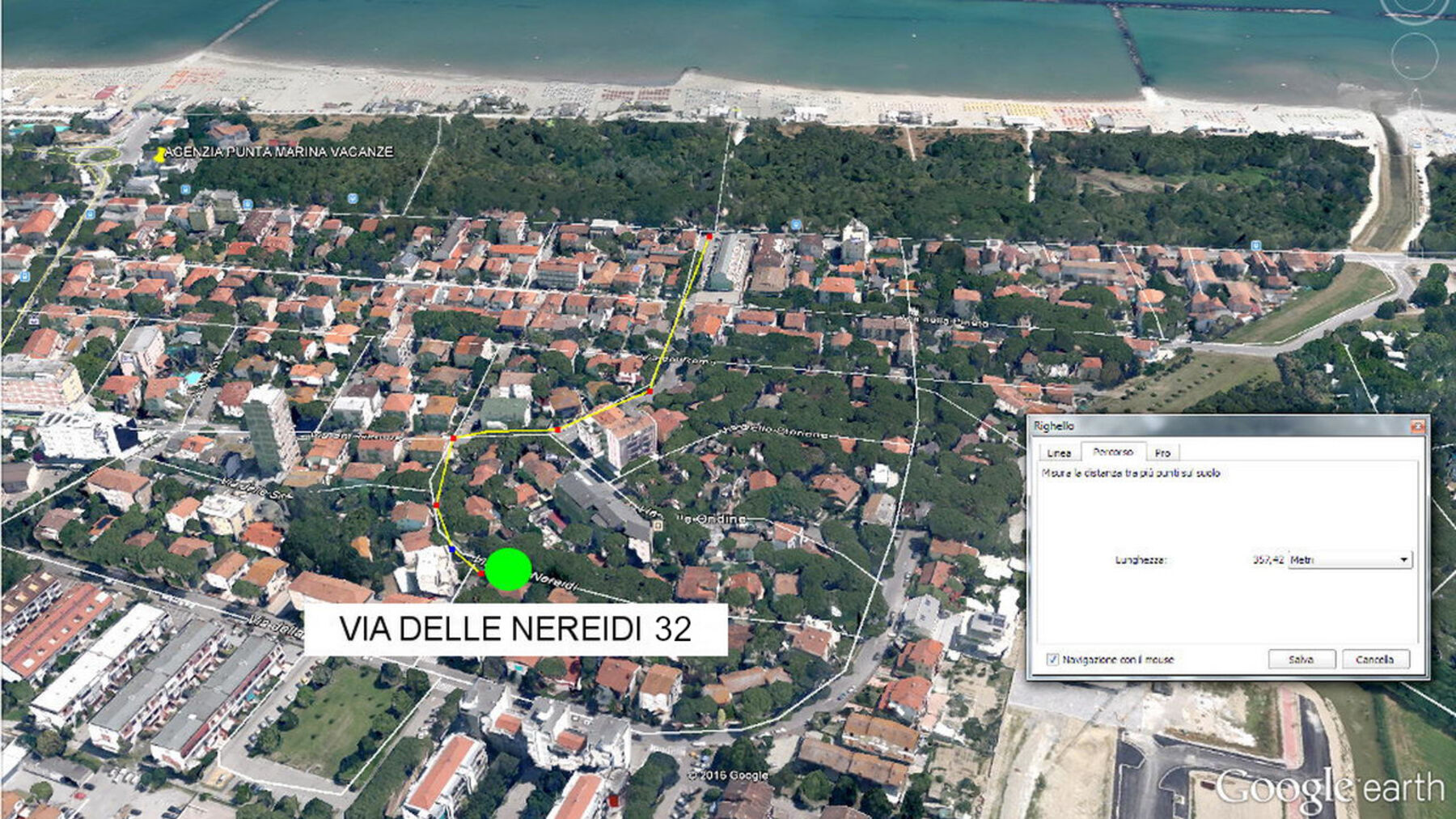 Villetta al piano terra, sita in via Nereidi 32, 350 m dal mare, posti letto 5, composta da soggiorno con angolo cottura, camera con letto matrimoniale, camera con letto a castello + letto singolo, bagno con box doccia. Appartamento dotato di tv, lavatrice , aria condizionata (split nel disimpegno),  inferriate e zanzariere (No animali). Il giardino di pertinenza di fronte alla porta d'ingresso è in uso esclusivo, ma non è delimitato fisicamente da quello dell'appartamento al piano superiore.