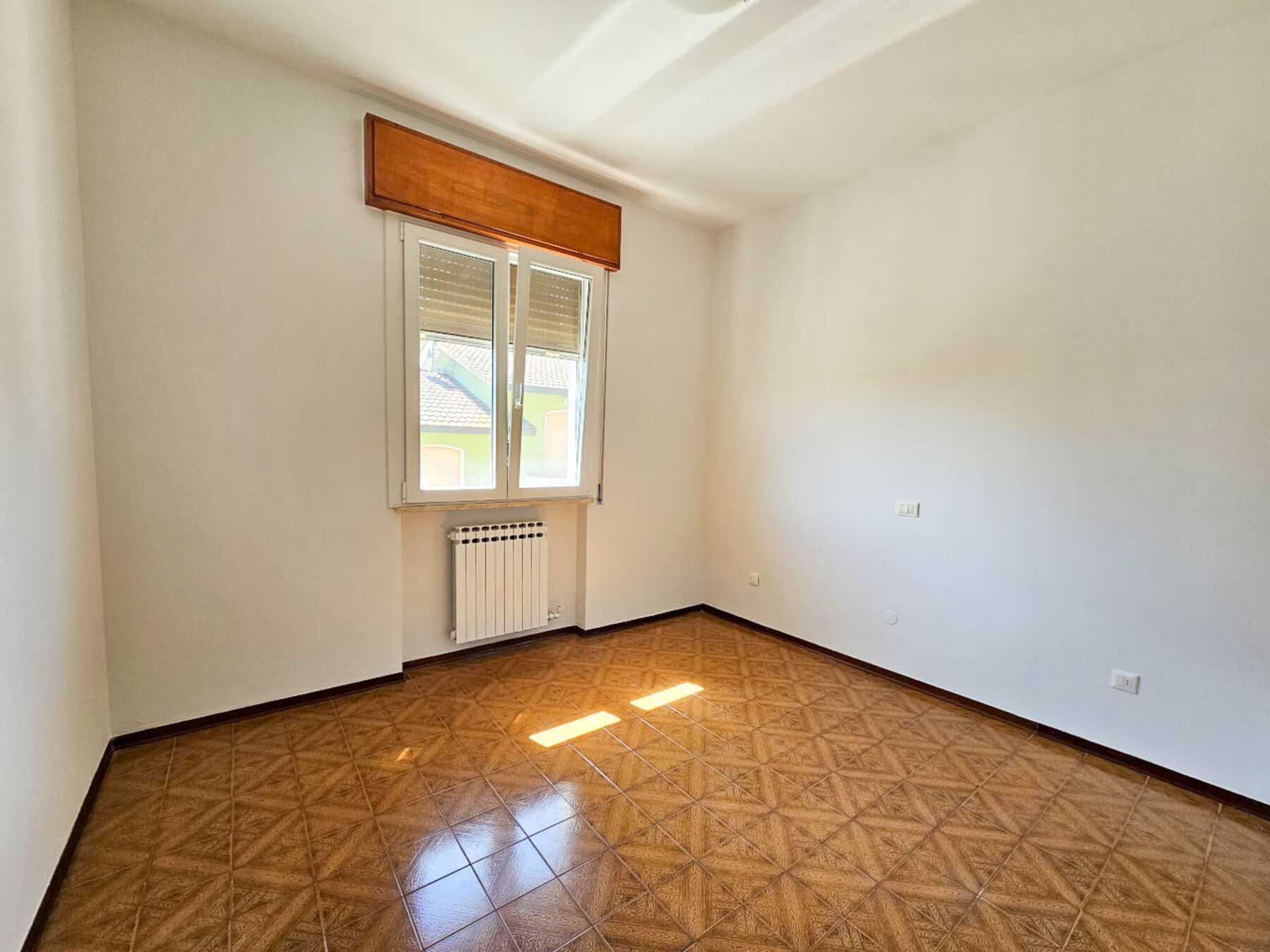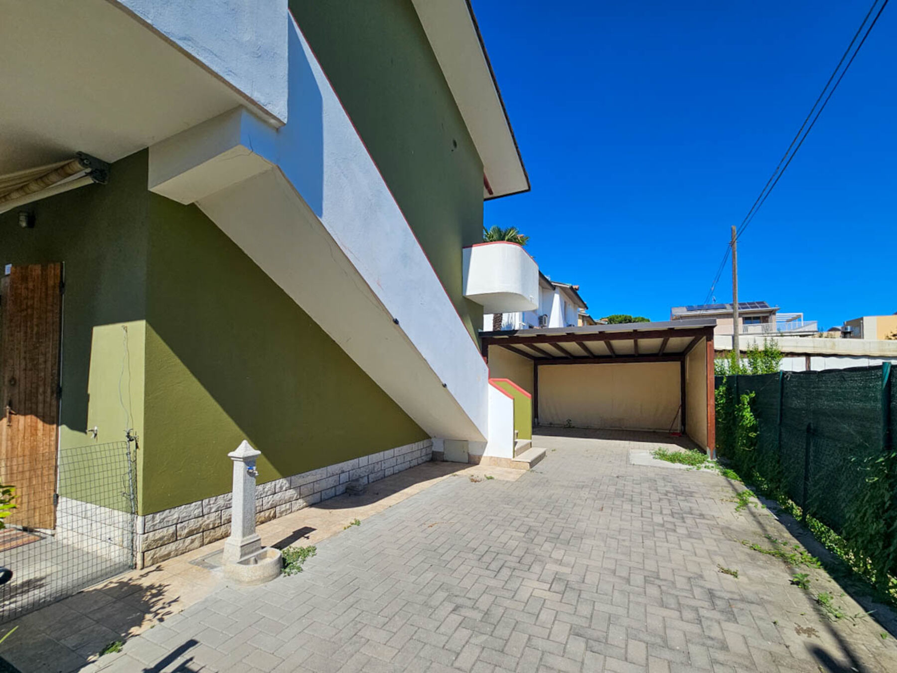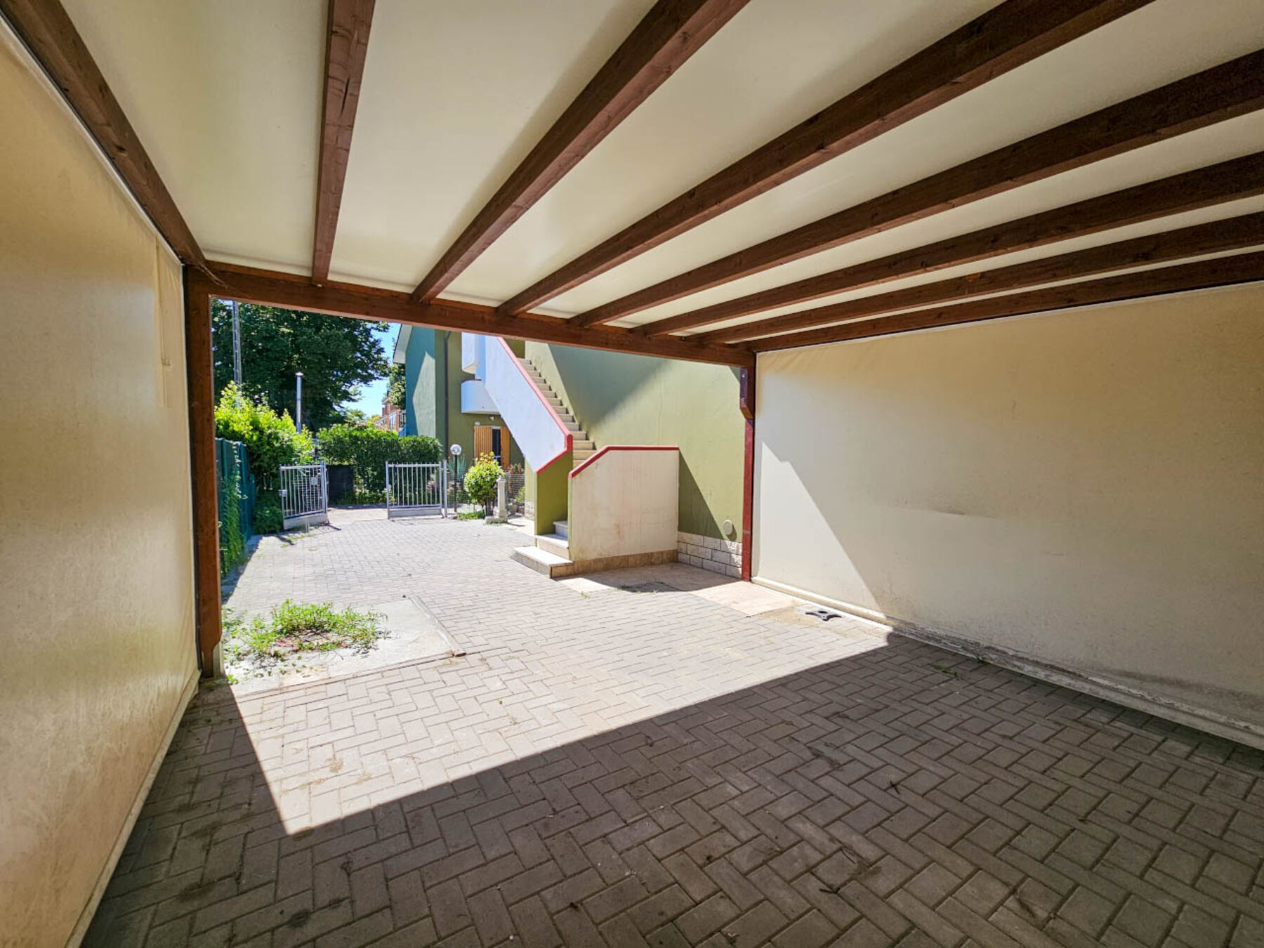 L'appartamento, situato al primo piano, vanta un ingresso completamente indipendente e un giardino privato (attualmente pavimentato con autobloccante) e include due comodi posti auto coperti all'interno del giardino.