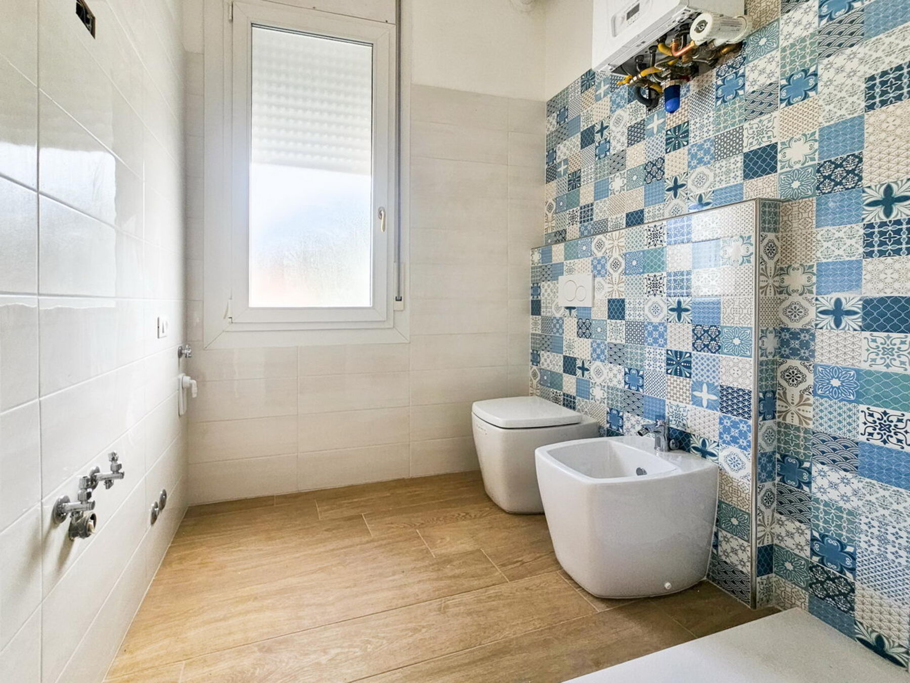 ed un bagno completamente ristrutturato con nuovi sanitari moderni.