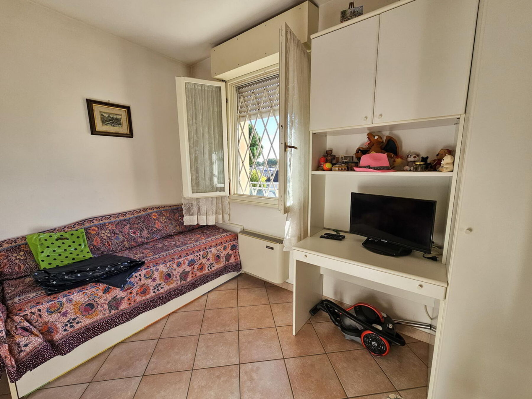 Bellissimo attico sito in Piazza San Massimiano 13, terzo ed ultimo piano, posti letto 4/5, composto da ampio soggiorno con angolo cottura, camera con letto matrimoniale, camera con 2 letti singoli + rete pieghevole, bagno con box doccia, bellissimo terrazzo esposto a sud est ideale per mangiare all’aperto. Appartamento dotato di tv, lavatrice, aria condizionata (split nel disimpegno verso le camere da letto), posto auto e ricovero per biciclette.