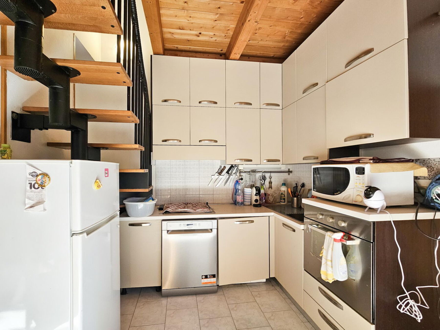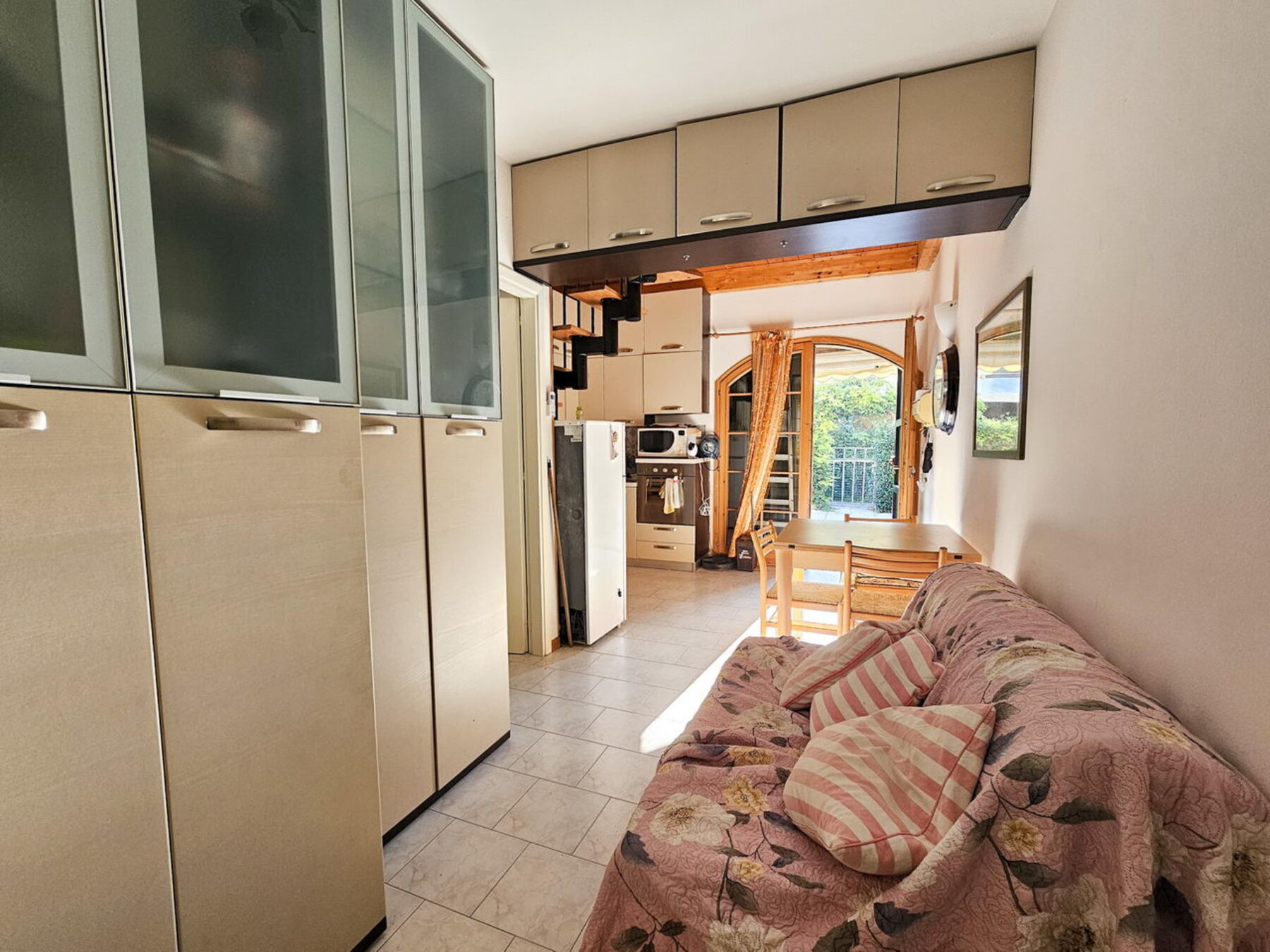Al piano terra troviamo una luminosa zona giorno con angolo cottura